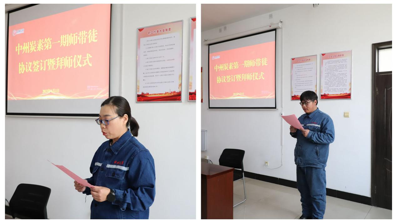 Teaching and teaching is the master's personal teaching of technical skills, experience, and cultural knowledge to the apprentice. This is not only a way for us to teach traditional skills, but also an effective way to train talents. On April 1, the "Zhongzhou Carbon Phase I Teacher-apprentice Agreement Signing and Teacher-apprentice Ceremony" was held in the training room on the fourth floor of the company ".